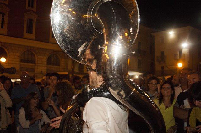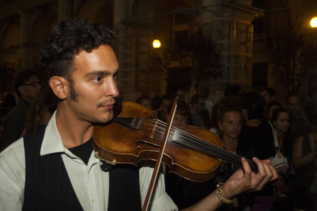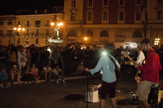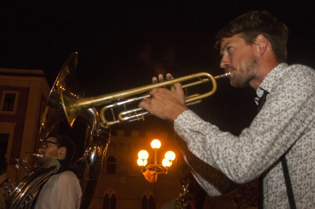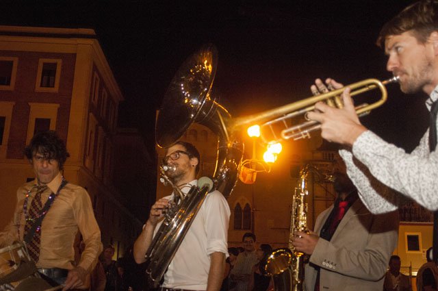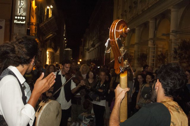 Una serata davvero emozionante. Il Ferrara Buskers Festival, manifestazione internazionale di artisti di strada che ogni anno si svolge nel capoluogo emiliano, ha invaso ieri sera il centro storico dell'Aquila per una serata all'insegna della musica dal vivo e dell'interculturalità. Le band si sono esibite in anteprima nel centro del capoluogo abruzzese, e hanno portato vita, note e soprattutto tantissima gente tra le vie incerottate (durante la serata è persino caduto qualche calcinaccio), i puntellamenti e le impalcature del centro storico provato dal terremoto di cinque anni fa.