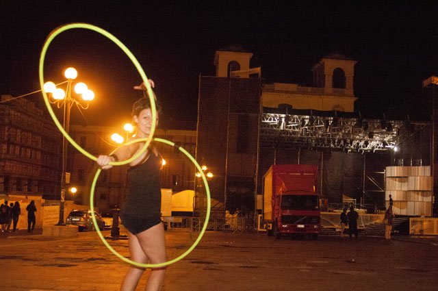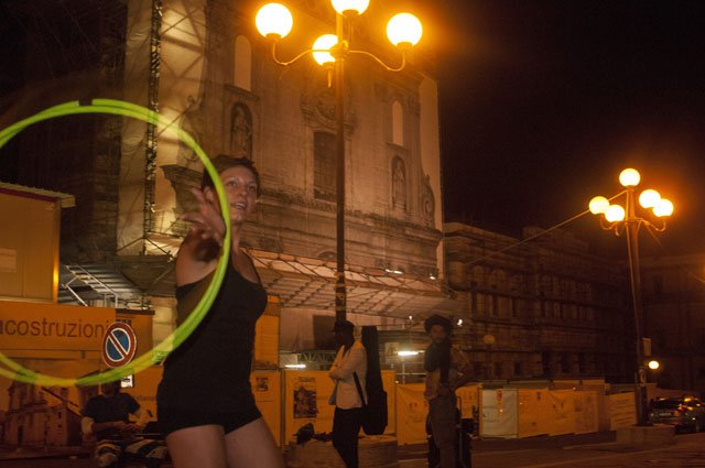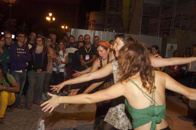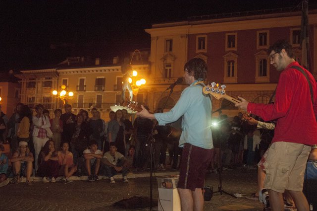 Migliaia di cittadini e turisti hanno invaso il cuore dell'Aquila. Tanti i sorrisi e gli applausi, in un luogo che da anni deficita della tipica quotidianità di un centro storico normale. Sono innumerevoli le iniziative che si sono susseguite all'Aquila negli anni successivi al terremoto, ma l'anteprima del Ferrara Buskers Festival è davvero una delle più pregevoli, emozionanti, qualitativamente valide. Il corso principale della città, ma anche le poche piazze accessibili ai pedoni, hanno fatto da palcoscenico ad artisti provenienti da ogni parte del mondo: Polonia, Spagna, Israele e Mongolia sono solo alcuni esempi. Una serata vibrante che rafforza l'idea della riappropriazione delle strade come senso profondo della riappropriazione dell'identità di comunità.