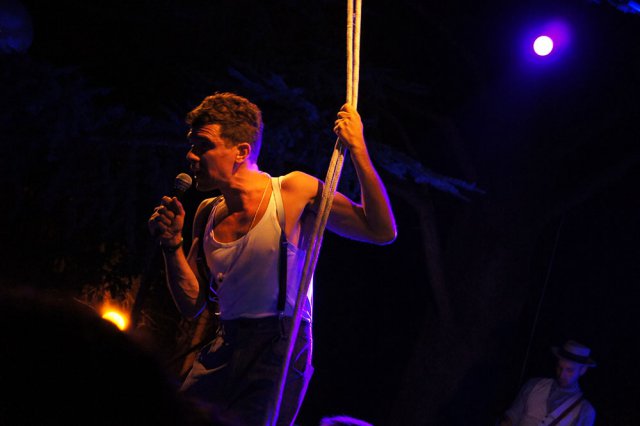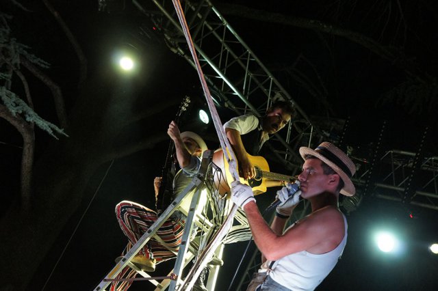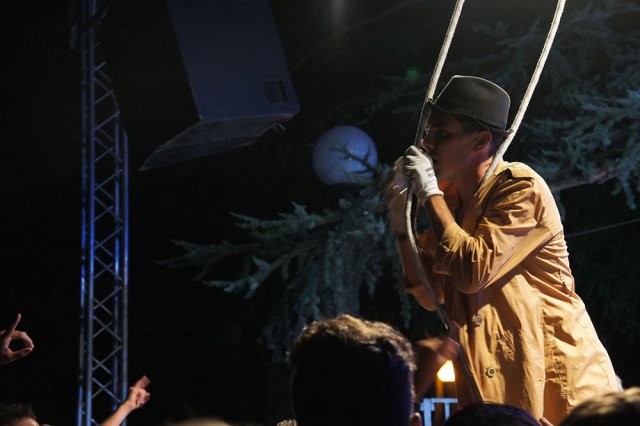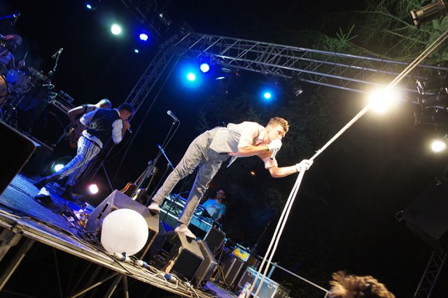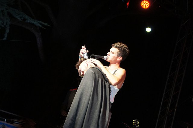 Mattatore della serata Lorenzo Kruger, leader della band, che come sempre ha dimostrato di essere un vero animale da palco: stage diving, dondolii sulla fune in mezzo al palco, giochi di luce e persino un ragazzo rasato sul palco sono solo alcune delle performance del cantante dei Nobraino durante i live. Un gruppo completo, che ha avvolto il parco verde del Castello Cinquecentesco, per uno dei concerti di punta della Perdonanza 2014. Nati a Riccione nel 2001, i Nobraino hanno presentato nel gennaio scorso il loro quarto album in studio, L'ultimo dei Nobraino.
