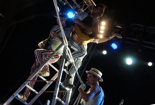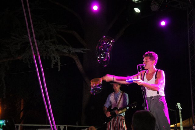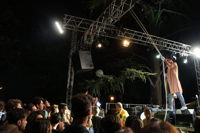 Originale, spregiudicato, colorato. Lo show della band romagnola Nobraino ieri ha conquistato L'Aquila. Il gruppo folk rock si è esibito sul palco del Parco del Castello, nell'ambito della 720esima Perdonanza Celestiniana. Tanti i fan che hanno ballato, fotografato e agitato gli accendini nelle ballad dei Nobraino.