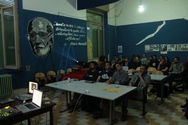 All'asilo occupato di Viale Duca degli Abruzzi - dopo un pomeriggio di seminari teorico-pratici sulla musica elettronica - è arrivata la musica techno live di Crystal Distortion, al secolo Simon Carter, tra i fondatori del gruppo inglese degli Spiral tribe ossia la storia della musica techno mondiale e dei primi free-party degli anni '90. Una musica che ha attirato seguaci da tutto il centro Italia e che ha tenuto in piedi centinaia di giovani e non, fino al mattino. Qui un video girato durante il live set del dj inglese.