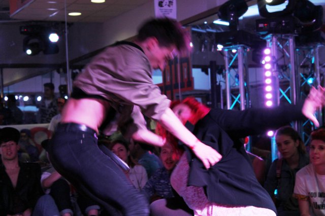 Poco più in là a San Bernardino - nella palestra Zero gravity - si svolgeva la sesta edizione dell'Hip Hop Festival Abruzzo (HHF). Anche qui di fronte a centinaia di ragazze e ragazzi si sono confrontati ballerini straordinari da tutta Europa. L'evento ha letteralmente riacceso un altro pezzo di città sottraendolo all'oscurità delle ore notturne. All'HHF si respirava un'area di internazionalità vera e integrata realmente con i tanti ragazzi aquilani presenti.