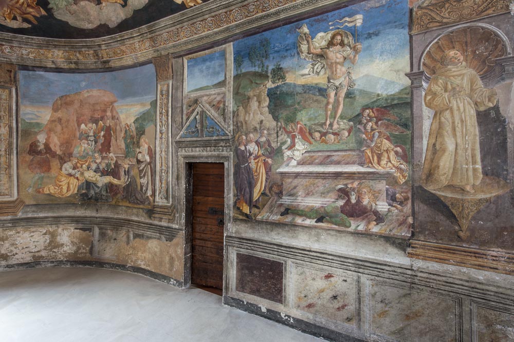 "I punti di partenza sono Firenze e la bottega del Verrocchio – ha spiegato Gulli nel corso della conferenza - lì Saturnino muove i primi passi nel 1470. Ma non è un rapporto che si limita a quegli anni, anzi continua seguendo gli itinerari del maestro. Andrea Verrocchio è un fenomeno da cui hanno origine esperienze diverse, si pensi al Perugino e a Da Vinci. Ebbene, quel mondo di psicologie stralunate, passa indisturbato anche nella pittura di Saturnino che é l'autore, tra il 1489 e il 1494, degli affreschi dell'abside di San Panfilo a Villagrande di Tornimparte (nella foto a sinistra) in cui rivela tutta la forza del legame con Firenze negli squarci luminosi e nelle aperture paesaggistiche a orizzonte basso".