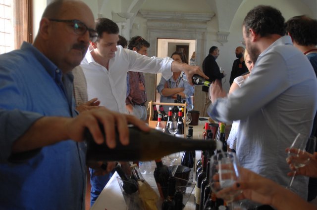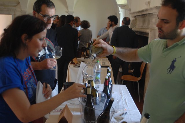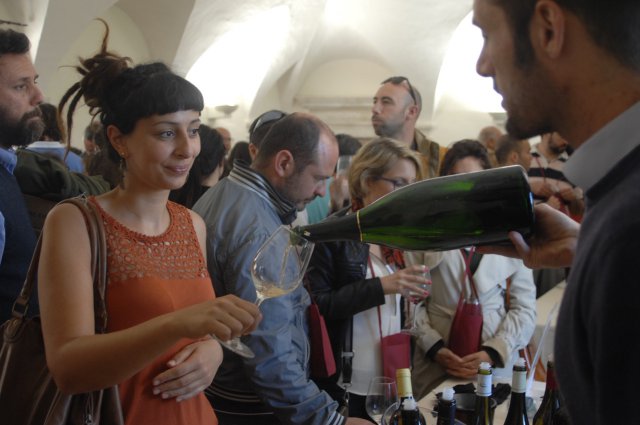 Weekend di vino artigianale a Navelli (L'Aquila). Nella splendida cornice di Palazzo Santucci, il borgo aquilano ha ospitato anche quest'anno Naturale, fiera del vino artigianale, organizzata dall'associazione DinamicheBio e giunta alla sua quarta edizione. Nel weekend sono state tantissime le persone presenti alle degustazioni, che hanno visitato le decine di stand di aziende agricole di vini naturali. Star di questa quarta edizione Sandro Sangiorgi e Nicolas Joli, che hanno tenuto seminari, partecipati da operatori e appassionati.