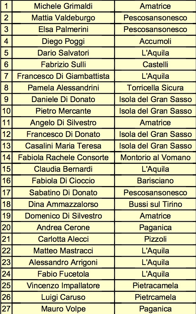 In una sala gremita si sono riuniti lo scorso 7 aprile i giovani aspiranti agricoltori selezionati dal Parco nazionale Gran Sasso e Monti della Laga nell'ambito del progetto "Legumi & legumi". I 27 selezionati (leggi i nomi nella foto a sinistra) si sono incontrati con 16 agricoltori esperti "custodi del Parco" all'interno della sede dell'Ente parco ad Assergi, frazione del Comune dell'Aquila ai piedi del Gran Sasso.