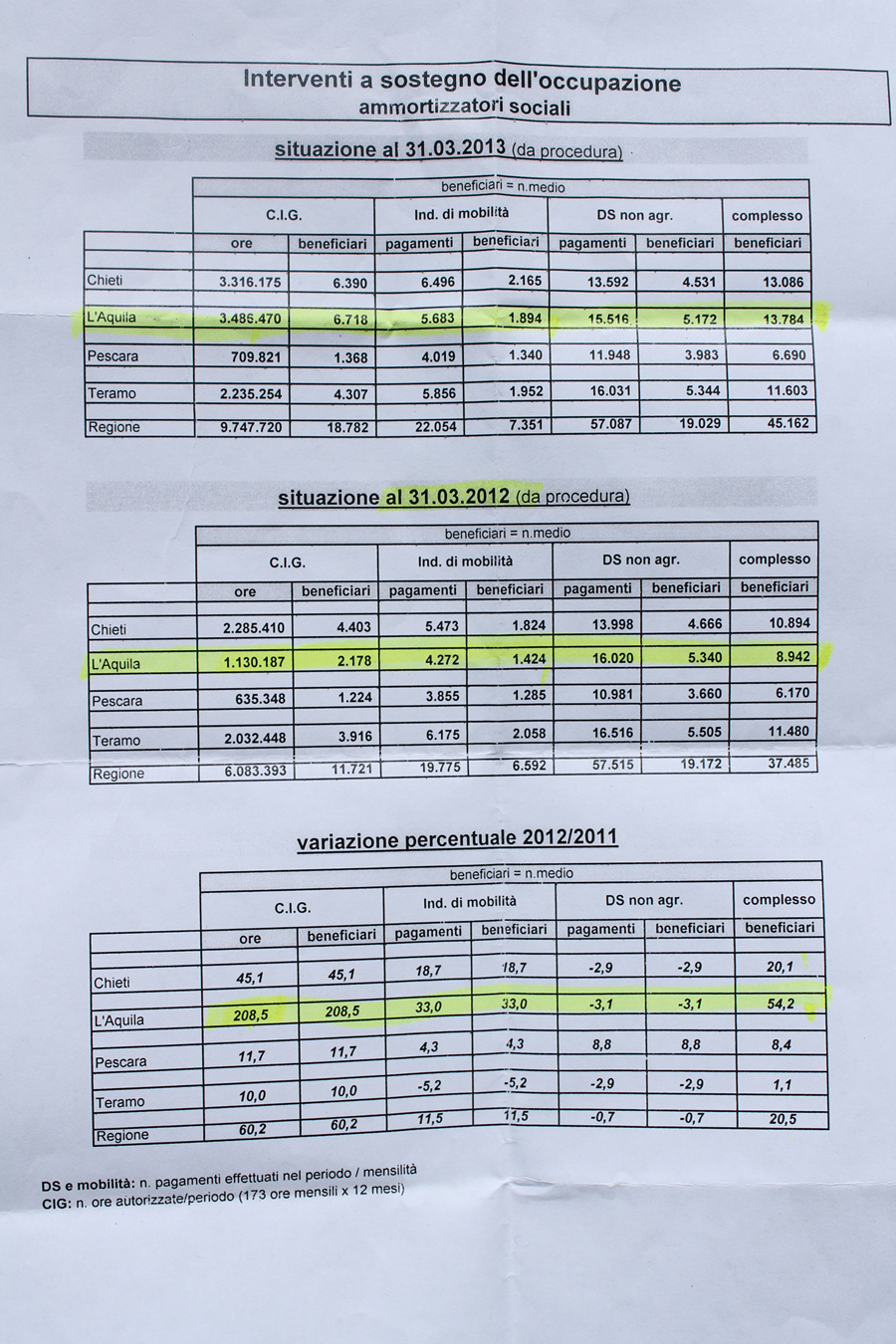 Per Paolo Sangermano della Cisl "ormai non c'è una sola zona di tutto l'Abruzzo che non sia in crisi. L'Abruzzo anzi ha anticipato la crisi che ha pervaso poi tutto il Paese perché già perdeva punti di Pil dal 2000, quindi non c'è più crescita da 13 anni. Oggi c'è una fase di recessione che rischia di essere depressione nelle aree interne - conclude Sangermano - quindi non è un caso se abbiamo indetto una manifestazione a L'Aquila perché deve esser chiaro che da qui si parte se si vuole dare una prospettiva occupazionale ed economica all'intera Regione Abruzzo".