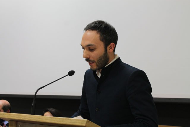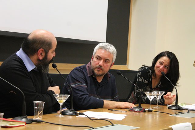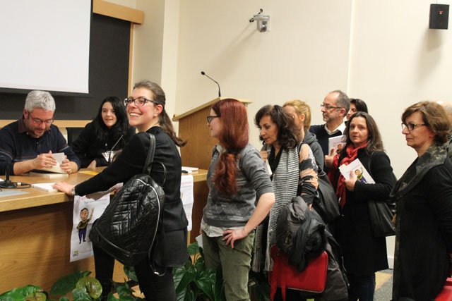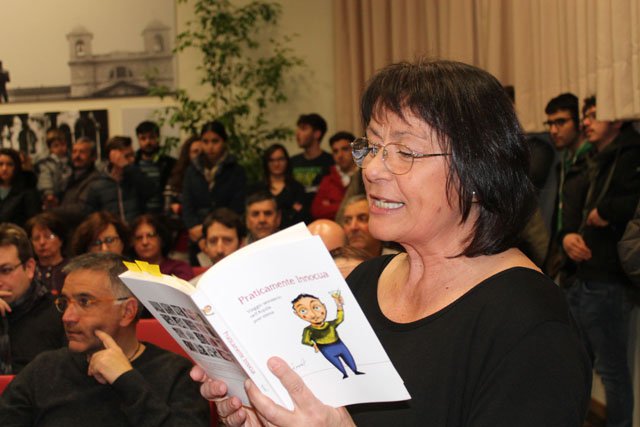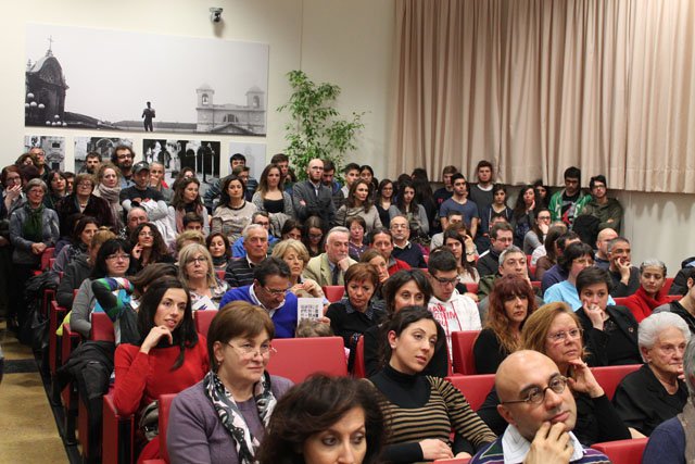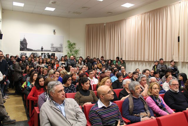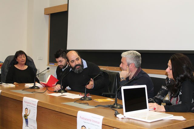 L'Aquila. Aula Magna del Gran Sasso Science Institute gremita per la presentazione del libro (nato da una rubrica di NewsTown) Praticamente Innocua. Viaggio semiserio nell'Aquila post sisma di Ford Prefect (edito dalla casa editrice UAO).