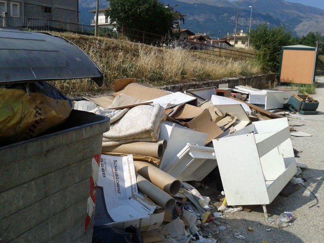 Come si vede, vicino i cassonetti dell'immondizia è stato abbandonato di tutto: mobili e masserizie, tubature di plastica, materiali in cartongesso, materassi, divani, elettrodomestici, vecchi giocattoli, cartoni, tavoli e sedie di plastica. Una vera e propria discarica a cielo aperto.