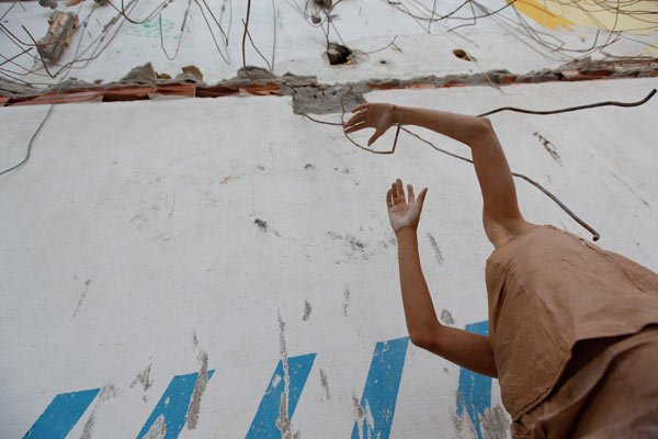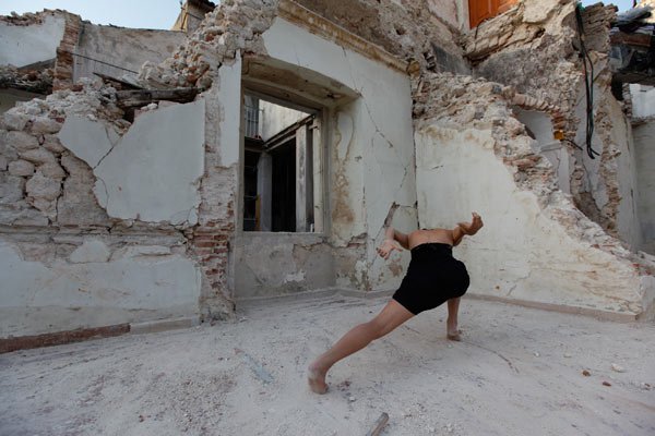 Nelle foto di reportage dell’immediato post-sisma non ho visto grandi cose. Alcuni fotografi di grandi reportage si sono stati addirittura rifiutati di fotografare. Per quanto mi riguarda, ho fatto tre mostre insieme ai colleghi Danilo Balducci e Marco D’Antonio, ma ho avuto un approccio più “sociale” e “amichevole” alla cosa. Ho infatti utilizzato il foro stenopeico per rendere tutto più pittorico e meno "distrutto": potremmo definirlo una sorta di distrutto pittorico, più lontano dalla realtà. Nello specifico ho fotografato con una macchinetta Holga 6x12. In questo modo si accavallano i fotogrammi: trovi così la chiesa di San Bernardino assieme a una scritta fotografata poco prima in un’altra piazza. Anche in questa confusione, cioè nell’errore fotografico, si può trovare qualcosa di particolarmente valido. Comunque tutti i fotografi aquilani hanno fatto un ottimo lavoro: oltre ai due già citati c'è anche Marco Salustro. Con loro, prima della chiusura della tendopoli di Piazza D’Armi, avevamo iniziato a fotografare quelli che avevano denominato gli “irriducibili” - coloro che non sapendo dove andare, non volevano lasciare le tende - e noi eravamo lì. Poi mi chiamarono per un film e lasciai il progetto, ma Marco D’Antonio proseguì il lavoro. Adesso ci sarebbero da fare nuovi reportage sulla ricostruzione, lavorando con tutti gli operai presenti in città e con quelli che verranno. Ad ogni modo, la fotografia artistica, per come la sto facendo io, è molto più difficile perché bisogna innanzitutto convincere delle bravissime danzatrici a venire a L’Aquila e, possibilmente, farle rimanere per non lavorare in fretta e furia. E tutto deve coincidere con la scelta del momento giusto per entrare negli edifici. Sappiamo bene che non sempre coincide: a volte puoi mettere la persona sbagliata nel posto giusto e viceversa, ma è del tutto normale. Fa parte del gioco.