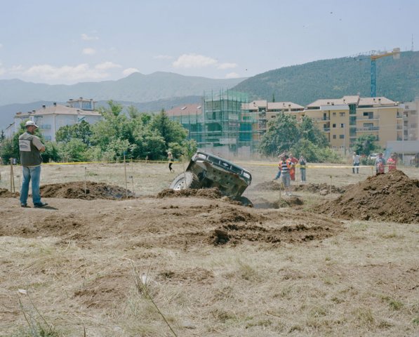 Da due anni lavoro su L'Aquila. Sono venuto sempre per brevi periodi, di sette-dieci giorni. Queste brevi visite mi sono servite per trovare una misura con cui interfacciarmi sul territorio e poter trovare una distanza con cui lavorare. Nel mio ultimo viaggio (giugno-luglio 2013, ndr), invece, sono rimasto per più di un mese. In quel periodo mi sono accorto di essermi appropriato di quella distanza, dal punto di vista visivo e del linguaggio, e l'ho voluta utilizzare. E' stato un mese fondamentale. Molte delle foto che hanno composto il lavoro finale, infatti, sono state scattate in quel periodo. Poi, sono andato via, ho lavorato sull'editing e mi sono confrontato con persone di cui mi fido, cercando il dialogo tra gli scatti.