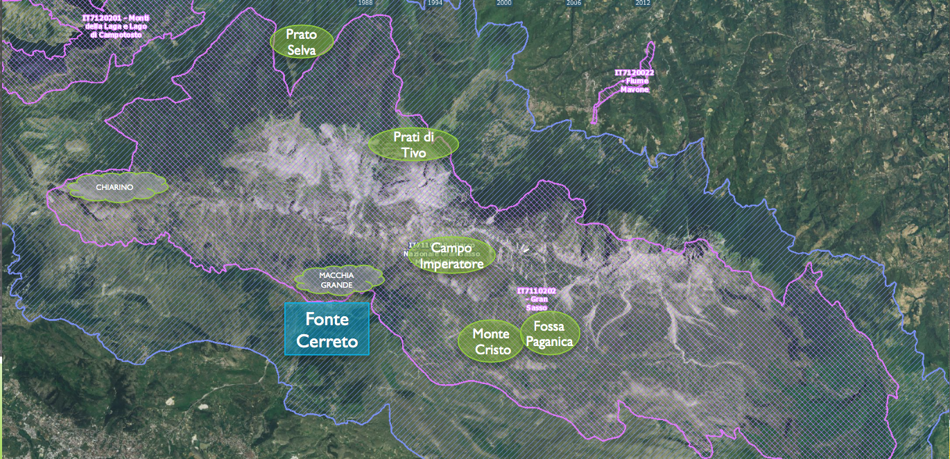 Prima che si arrivi a questa fase, il comitato pone dunque la questione di ridefinire i confini delle Sic nel Parco del Gran Sasso e Monti della Laga dove sono particolarmente estese (il viola nella cartina sotto) ed onnicomprensive.