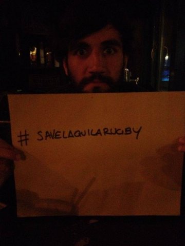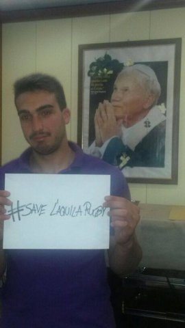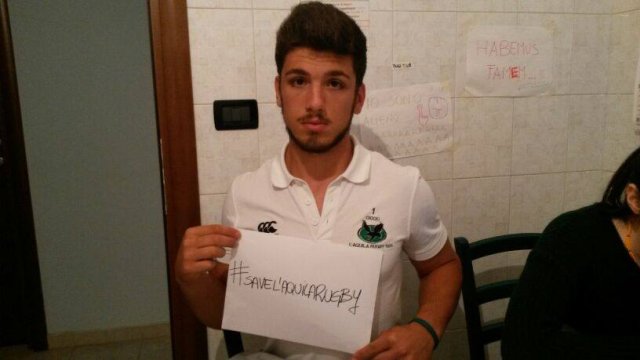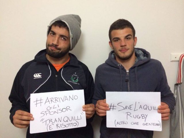 "Direzione finale, senza stipendi da Dicembre. Supportateci e parlate di noi. Selfati e usa l'hashtag #savelaquilarugby", è questo il messaggio lanciato dai giocatori, che hanno creato una fan page su Facebook, nella quale minuto dopo minuto vengono pubblicati i selfie degli atleti. Tra gli autoscatti, non mancano riferimenti esplicitamente polemici, come quello della terza linea Luca Di Cicco, che regge la scritta "Arrivano gli sponsor, 'tranquilli', è risotto".