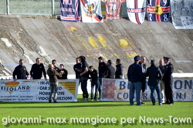L'Aquila batte la Carrese per 1-0 con un grande gol di Corapi. Ma la vittoria contiene una nota amara. Oggi infatti il Tommaso Fattori non sembrava sé stesso senza i colori e i canti della Curva Sud. I gruppi organizzati infatti sono rimasti fuori per protesta dopo che la questura ha vietato loro di portare dentro le mura dello stadio due striscioni che davano semplicemente il bentornato a tre ragazzi che hanno finito di scontare il daspo. Un divieto che però ha contribuito ad alzare la tensione. Gli ultras hanno ripreso tutte le loro pezze che già coloravano la curva e sono usciti per strada dove sono rimasti per tutta la partita, non certo in silenzio.