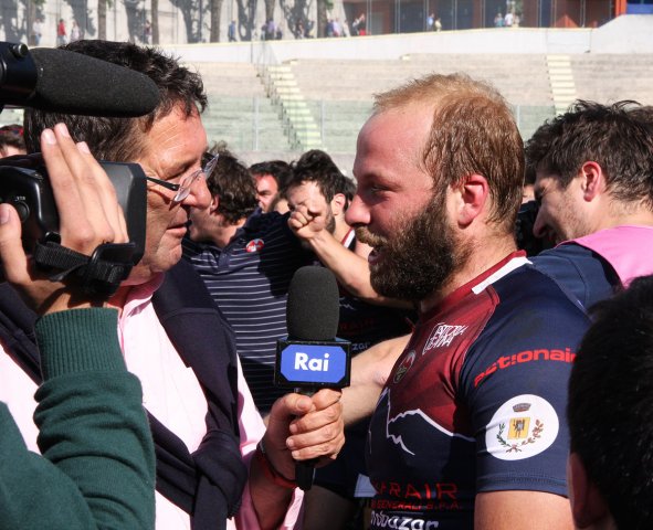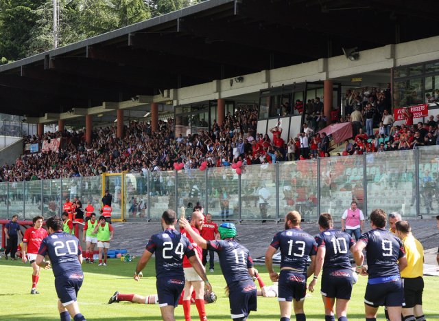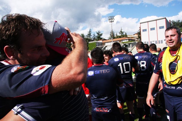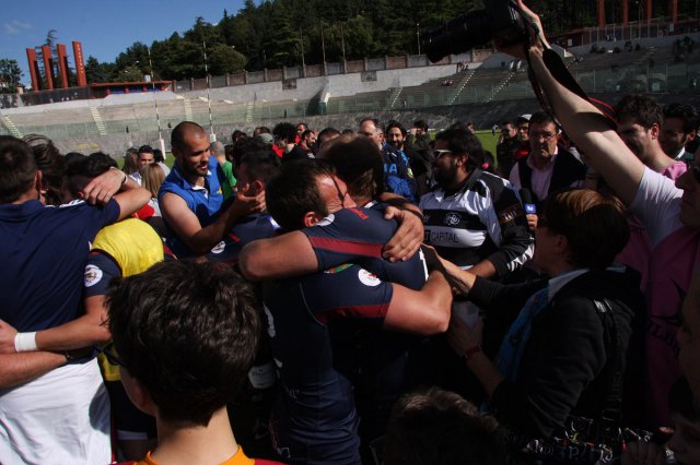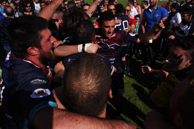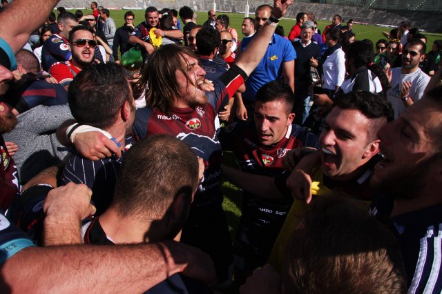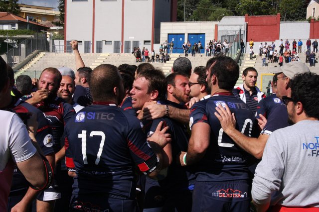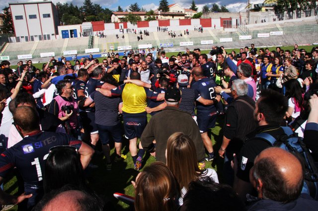 E' grande festa al “Fattori” per la prima storica promozione della Gran Sasso Rugby in serie A. Con un'impresa d'altri tempi gli aquilani travolgono i Ruggers Tarvisium 26 a 9 (5-0) e conquistano la serie A. Per il sodalizio è una giornata epica, come anche per tutto il movimento rugbystico aquilano.