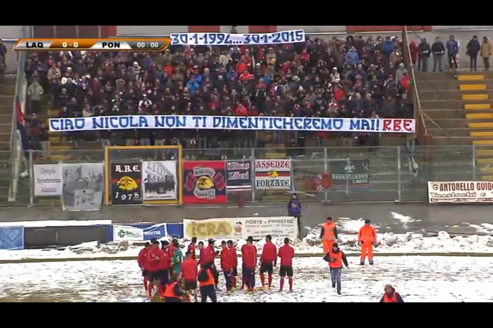 Applausi anche dai tifosi del Pontedera che da allora hanno sempre manifestato vicinanza ed affetto verso la drammatica vicenda che coinvolse il tifoso aquilano mentre raggiungeva la loro città. Tifosi amaranto ovviamente contrariati per i chilometri fatti a vuoto.