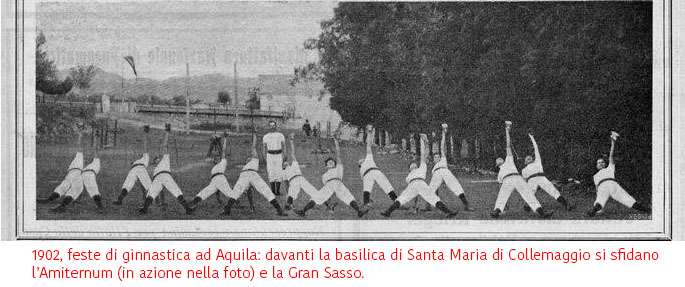 Dopo i numerosi incontri, nei primi anni del XX secolo ed in varie discipline ginniche, tra l'Amiternum aquilana e la Gran Sasso teramana (due tra le società sportive più antiche d'Abruzzo), il 15 luglio 1913 un match sul campo di piazza d'Armi segna l'approdo del calcio nella città aprutina mentre l'esordio del foot-ball nel capoluogo è riconducibile al 25 aprile 1915, giorno in cui è documentata la prima amichevole dell'Aquila FBC sul campo di piazza San Basilio.