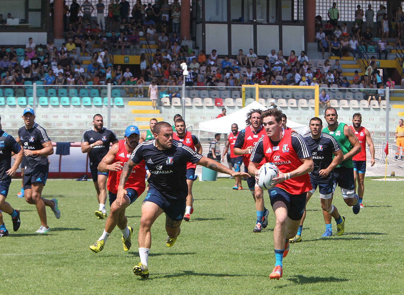 Applausi ed incitamenti da test-match internazionale per gli azzurri, con capitan Parisse e gli altri veterani Mauro Bergamasco, Martin Castrogiovanni e Andrea Masi – insieme al terzo abruzzese del gruppo, Giovambattista Venditti – tra i più ricercati al termine della lunga seduta d'allenamento per gli autografi e le fotografie di rito.