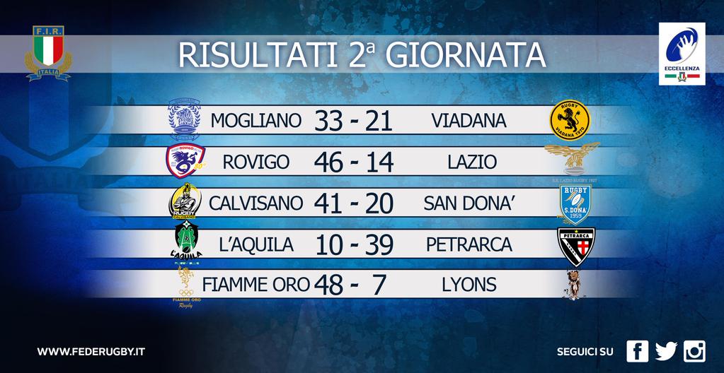 Campionato nazionale d'Eccellenza, II giornata