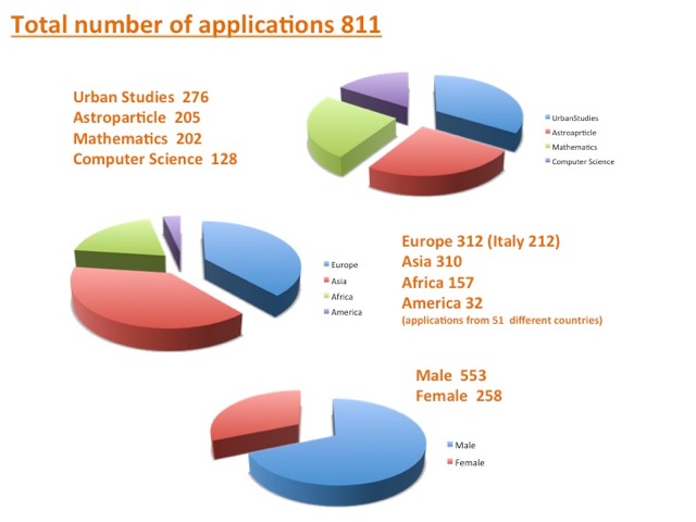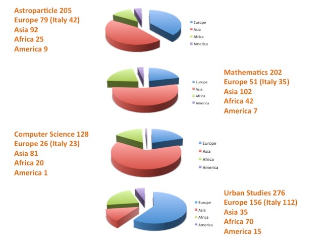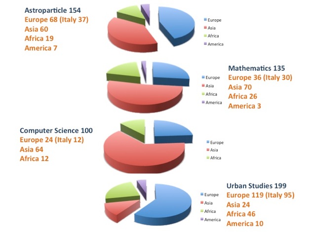 Da quali Paesi provengono le domande per il GSSI? NewsTown vi propone in esclusiva le statistiche relative alla provenienza dei giovani ricercatori che hanno fatto domanda per il nuovo ciclo di dottorato al Gran Sasso Science Institute. Le domande sono state effettuate da ben 51 differenti nazioni, mentre sono 212 (sulle 811 totali) quelle inoltrate dall'Italia. Tra i ricercatori ammessi, ben 218 (su 588 totali) provengono da Paesi asiatici. La variegata provenienza di chi inoltra domanda per il GSSI non può che continuare a contribuire al processo di apertura cui si è inevitabilmente sottoposta L'Aquila, soprattutto dopo il sisma del 2009.