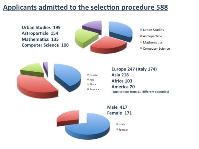 "Le domande inviate da tutto il mondo dimostrano l’interesse crescente per i programmi di dottorato del Gran Sasso Science Institute - commenta il direttore Eugenio Coccia - delle 800 totali, circa 600 sono state ammesse al processo di selezione che porterà all’Aquila a novembre i nuovi 40 allievi della nostra scuola di alta formazione. Questa attenzione ci inorgoglisce e conferma che L’Aquila può credere nel suo futuro di città della conoscenza".