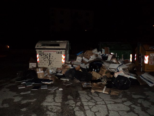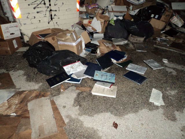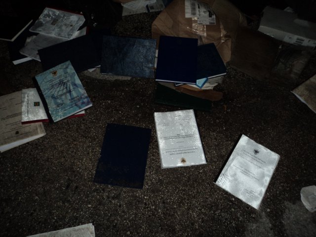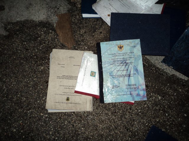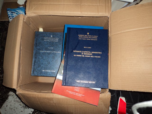Accanto ai cassonetti della spazzatura, decine e decine di tesi di laurea gettata alla rinfusa.
