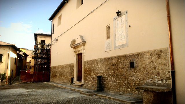 Qual è, invece, la situazione degli edifici che insistono sulla Via di Fossa? Su un lato della strada c'è un aggregato, di cui una parte è addirittura perfettamente agibile e abitabile – era classificato B ma dopo i lavori di ristrutturazione è tornato agibile già nel 2010 – e un'altra parte è inagibile, ma puntellata con barre di ferro in modo totalmente indipendente dal ponteggio visibile dalla strada. Dall'altra parte della via, invece, insiste una parete della chiesa di Monticchio. Anche in questo caso, la chiesa sembra ristrutturata, ma i lavori non sono mai stati riconsegnati e la ditta è andata via prima della riconsegna definitiva [foto a sinistra, clicca per ingrandirla]. "L'hanno riparata, ma poi hanno detto che sono finiti i soldi, quindi i lavori non si sono mai conclusi del tutto", ci racconta un anziano signore seduto su una panchina di fronte la chiesa-container che, ancora oggi, ospita i fedeli.