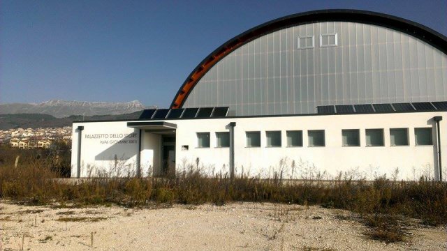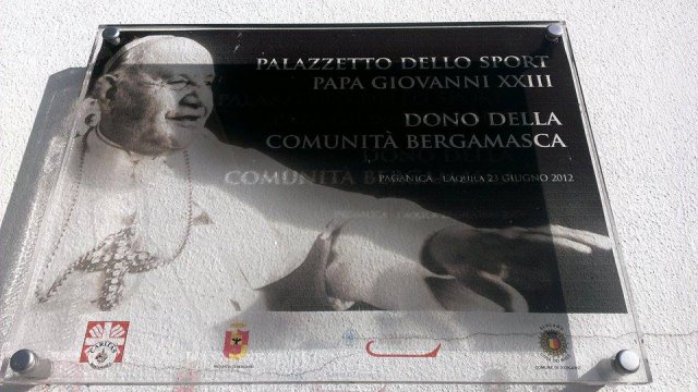 Dopo il sisma del 2009 la Caritas di Bergamo, di intesa con le istituzioni locali bergamasche, si adopera per finanziare e costruire un palazzetto dello sport, da donare all'Arcidiocesi dell'Aquila. La struttura viene inaugurata, come detto, all'inizio dell'estate 2012. Ma per l'apertura mancano dei lavori obbligatori per legge, come gli scavi antincendio. Nel frattempo, però, la Biffi Costruzioni – impresa del bergamasco incaricata di realizzare i lavori dai donatori – fallisce. L'opera viene terminata, a proprie spese, dall'impresa aquilana Armido Frezza, che deteneva il subappalto. Intanto il tempo passa e giungiamo all'autunno 2014, con un'opera inaugurata due anni fa e mai valorizzata, che spunta come un'astronave tra l'erba alta della campagna di Paganica.